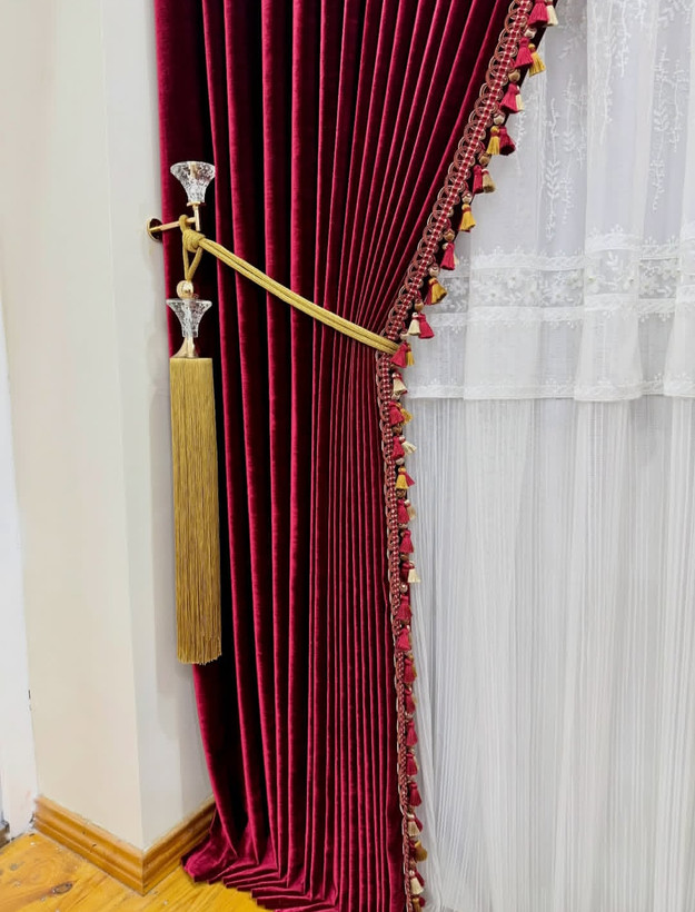 پرده پذیرایی کرپ شاین ترک و ترکیب مخمل دلاریس نیمه براق