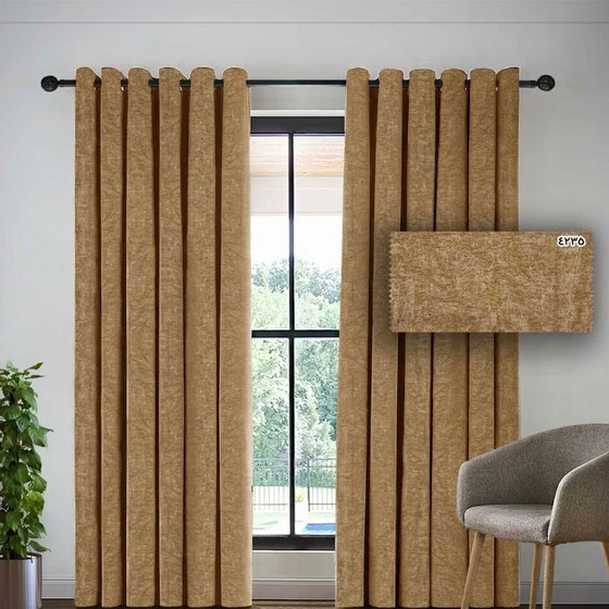 پرده پانچ اتاق خواب مخمل شانل رنگ نسکافه ای