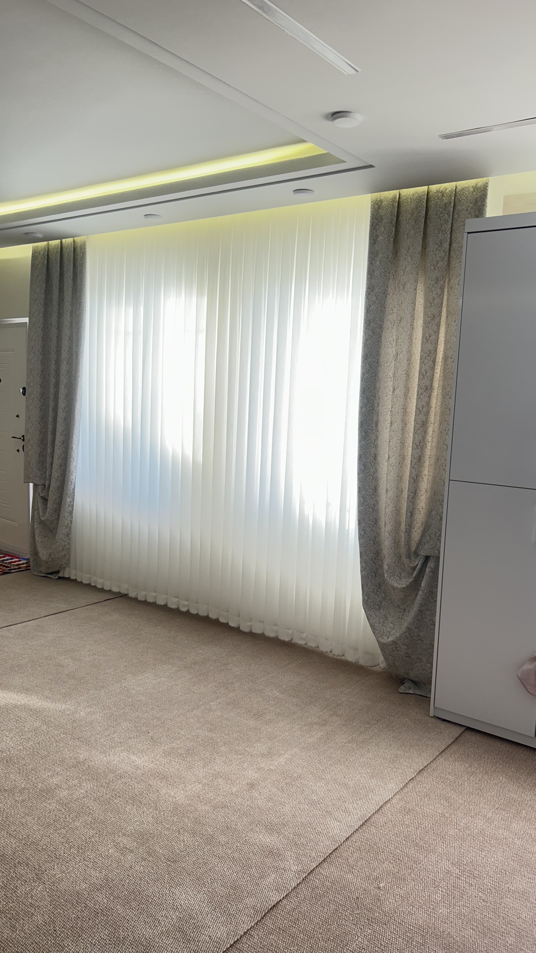 پرده پذیرایی حریر ساده مدل پلیسه با دو عدد دکور نگین دوزی شده مدل ریزشی