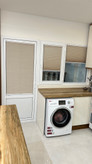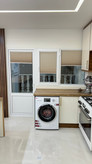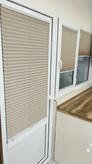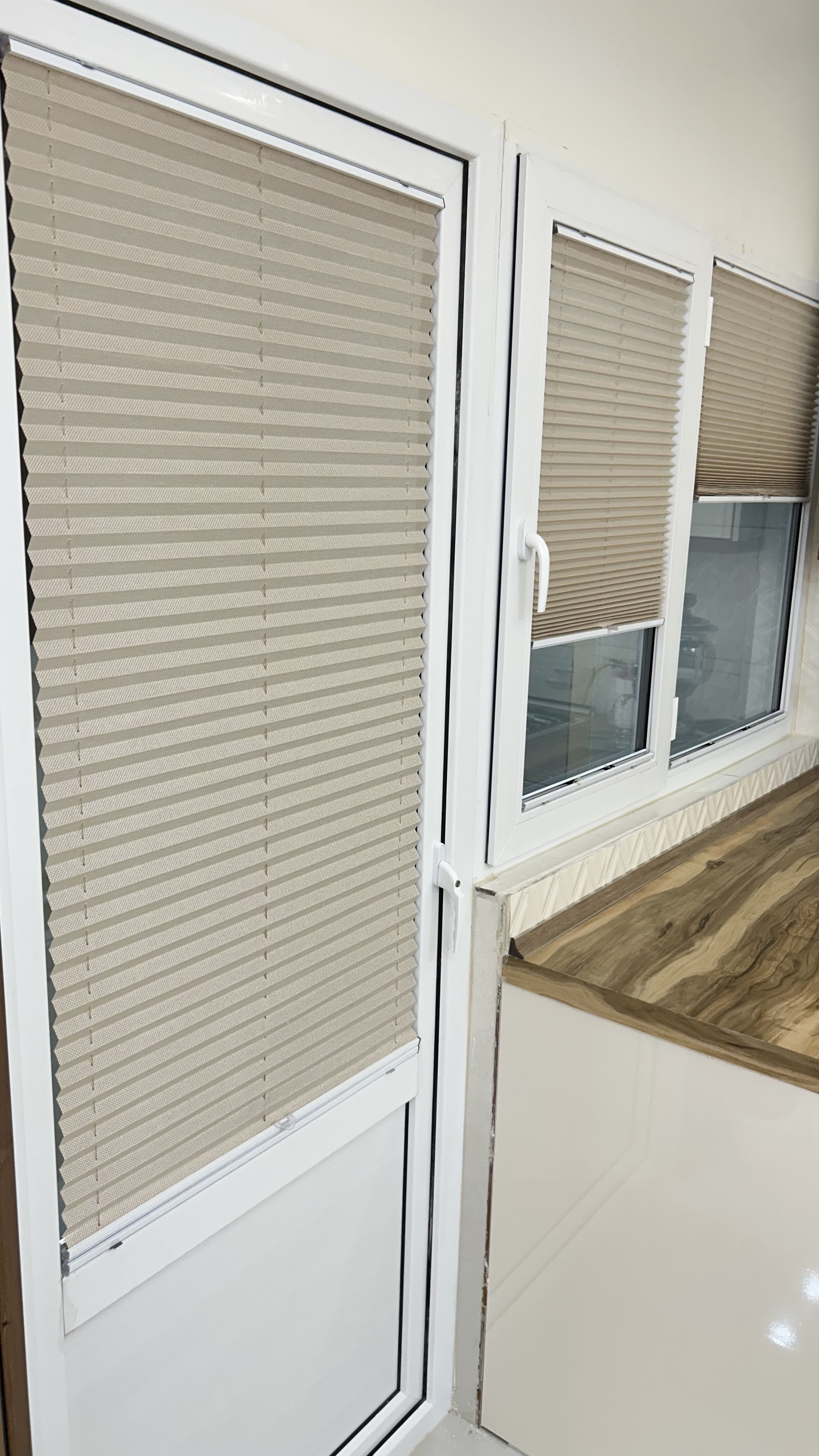 پرده مدرن اشپزخونه پلیسیه دستی در رنگ بندی و داخل کادر شیشه نصب میشه