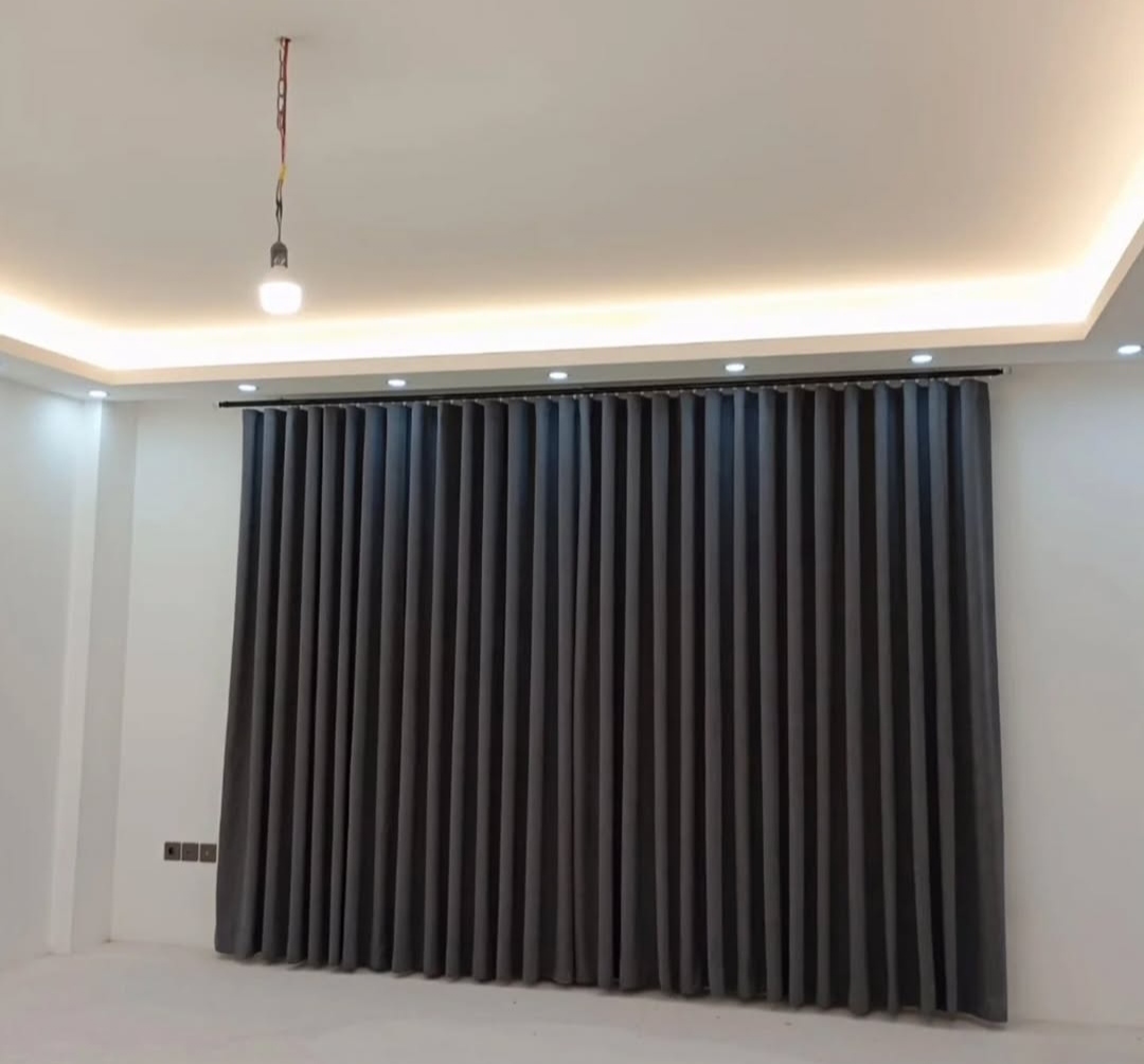 پرده پذیرایی مدل مینیمال جنس کتان هازان رنگ مشکی عرض ۳