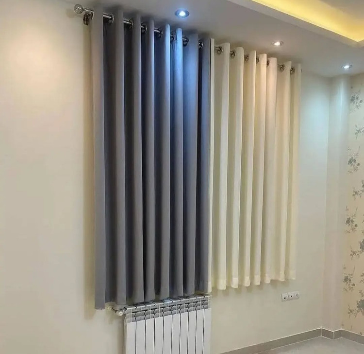 پرده اتاق خواب مدل پانچ ترکیب حریر شیری با طوسی سفارش بالای ۳۰متر دوخت رایگان میباشد