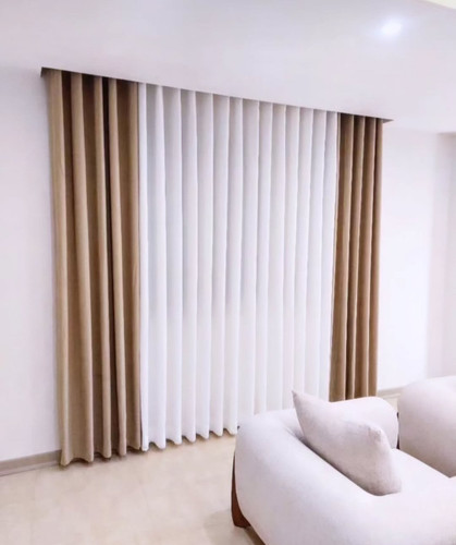 پرده حریر ساده و آستری و دو عدد مخمل شانل مدل مینیمال برای پنجره 5متری